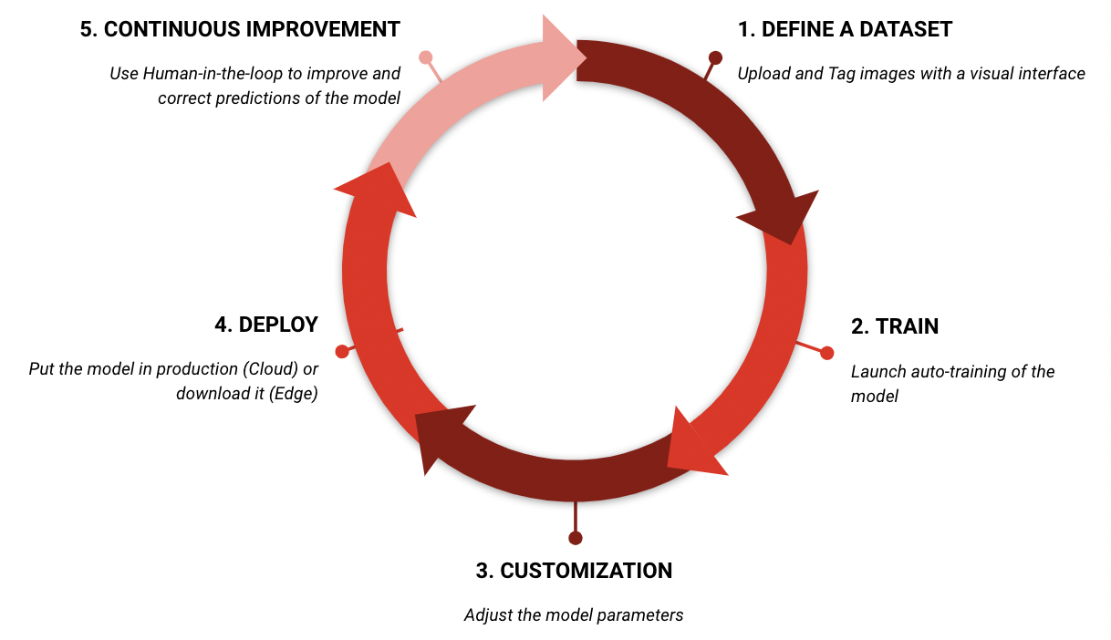 WizyML Studio es un módulo de proceso de 5 pasos que permite entrenar modelos específicos de Visión por Computadora (Computer Vision) en WizyVision. Esta función solo está disponible en el panel de Administración.
