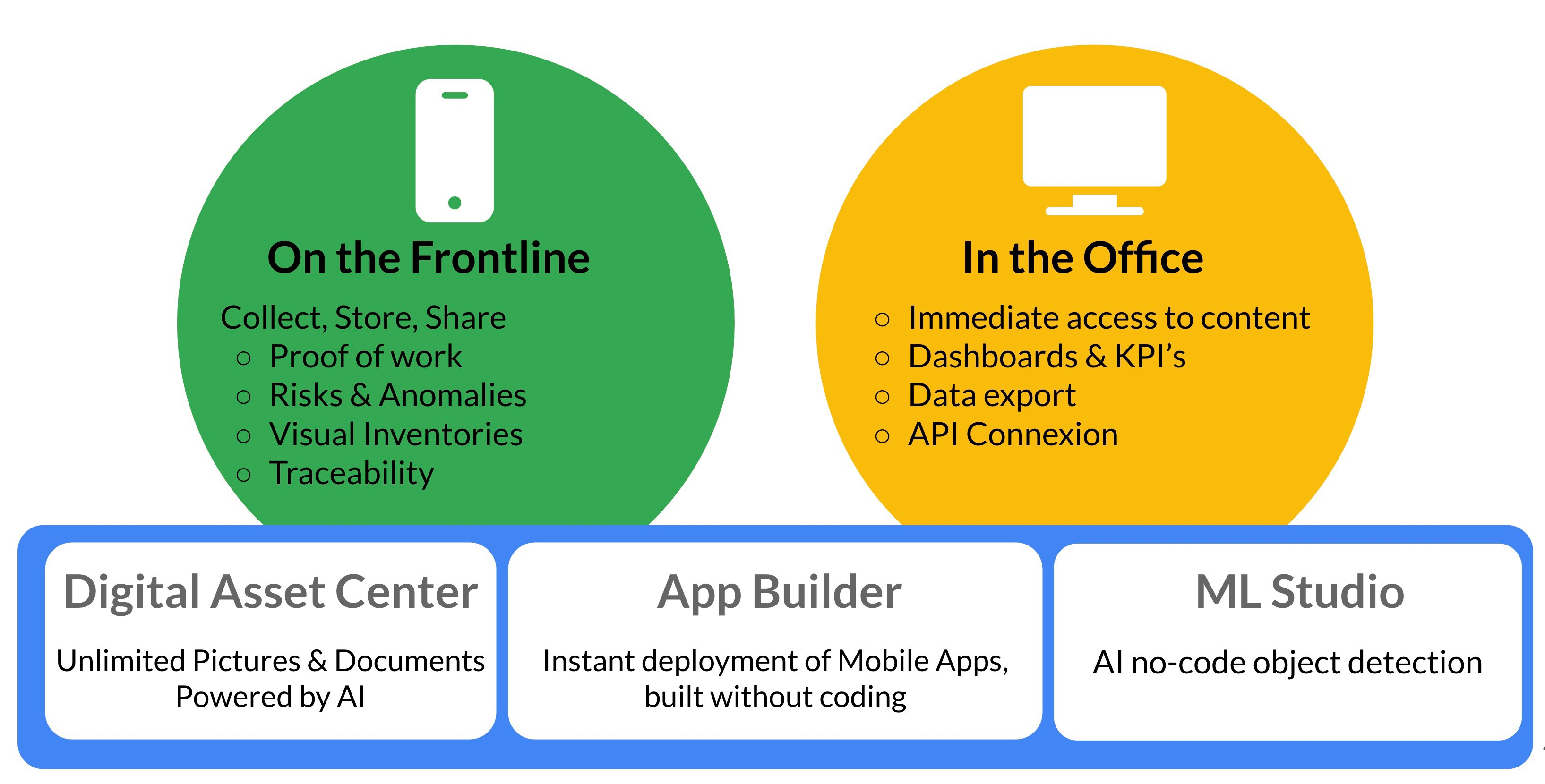 Digital Asset Center (DAC) : Le DAC est votre centre de gestion centralisé pour le stockage, l’organisation et la visualisation de tous vos contenus multimédias. Des photos aux documents, en passant par les vidéos, le DAC offre une solution sécurisée et évolutive pour gérer vos actifs numériques. Recherchez, étiquetez et retrouvez facilement vos fichiers, et tirez des informations précieuses des données visuelles capturées sur le terrain.