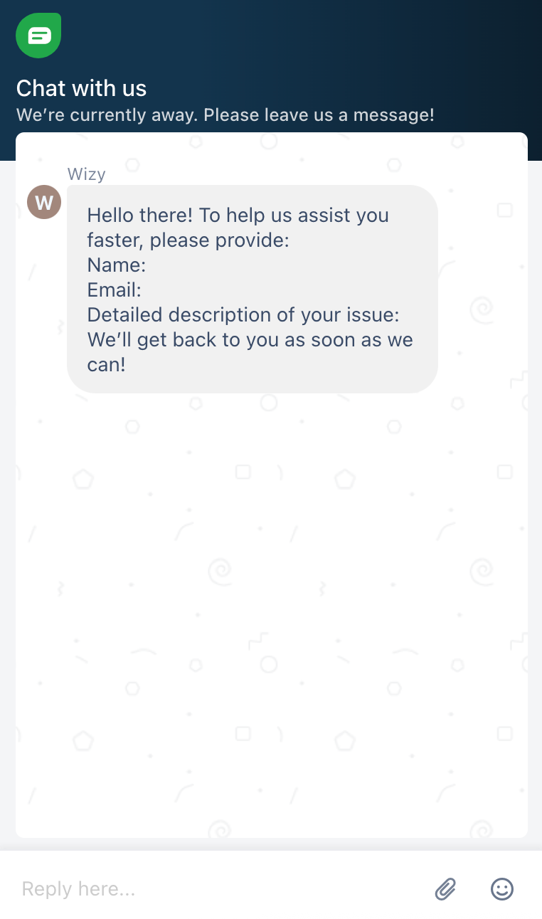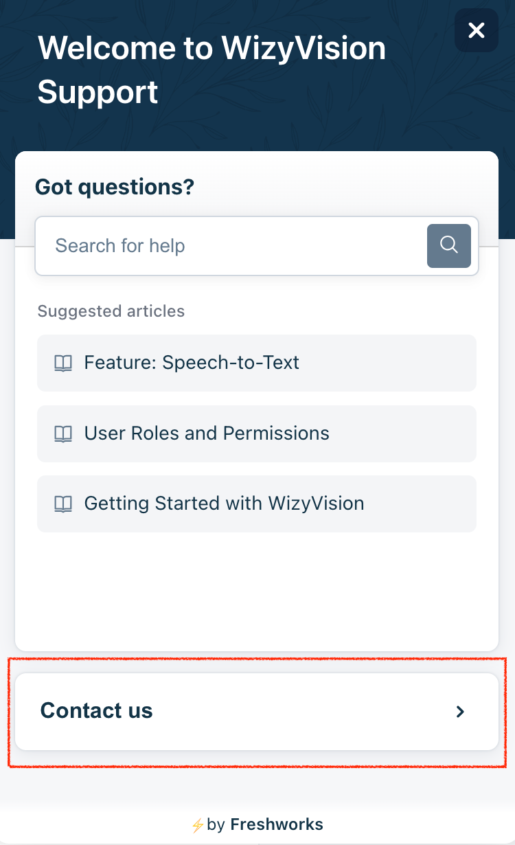 Votre message sera envoyé directement à l'équipe d'assistance WizyVision et vous recevrez des mises à jour via l'e-mail que vous avez fourni.