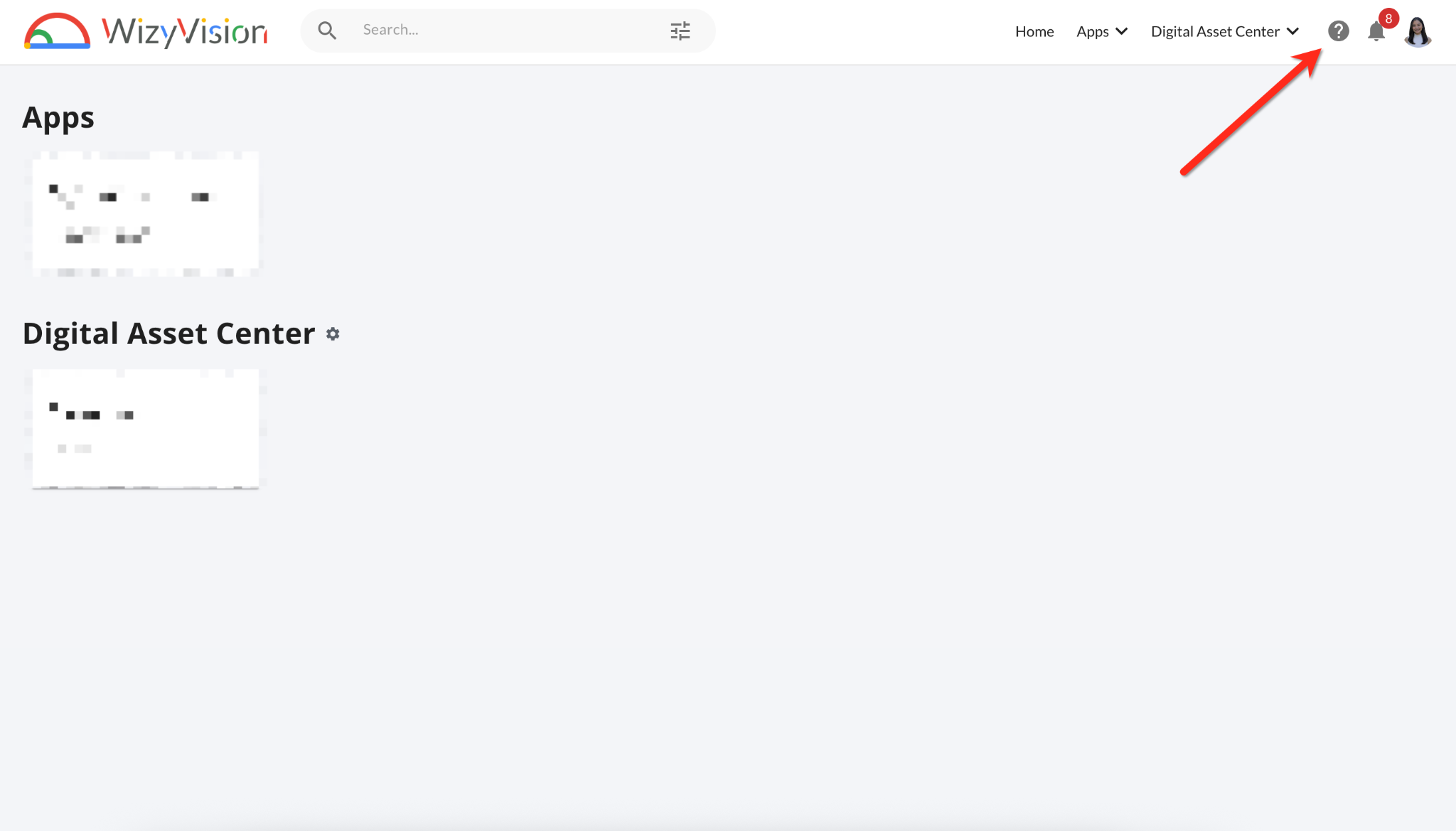 Alternativement, vous pouvez accéder au Portail d'assistance directement depuis votre instance WizyVision en cliquant sur l'icône de point d'interrogation dans le coin supérieur droit.
